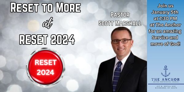 Join us Jan 5th for Reset 2024 and prepare to Reset to More at Reset 2024! Pastor Scott Marshall is our speaker, we’re extremely excited to have him, and excited for an amazing service and move of God! This is a service you don’t want to miss!